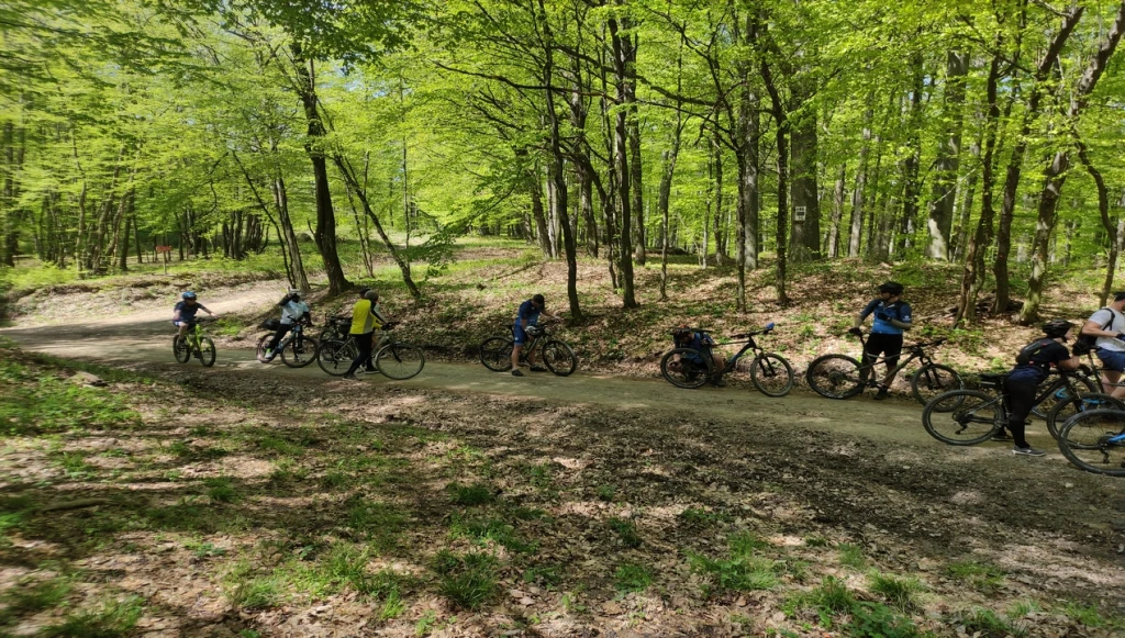 Kružna biciklistička ruta, započinje u Kutini. Prvi dio staze čini asfaltirana cesta koja prolazi tragom moslavačkih vinskih cesta i vodi pokraj kleti Mikša, Repušničke kleti na Mramor brdo, kroz Ciglenicu i Mikleušku sve do drugog dijela, makadamskog, koji vodi kroz šumu do ponovnog povratka na asfaltiranu cestu. Šumski dio staze vodi pokraj kamelonoma na čijem se ulazu nalazi izvor sv. Kristofera – zaštitnika putnika i vozača, jezera Mikleuška, do Humke – najvišeg vrha Moslavačke gore na prostoru kojeg se nalazi odmorište. Cjelokupni uspon na Humku prati potok sa brojnim malim slapovima koji stvaraju prekrasan doživljaj, koji upotpunjuje brojan životinjski svijet. Nakon uspona na Humku slijedi spuštanje niz prekrasan krajolik Moslavačke gore. Spust prolazi pokraj skretanja za arheološko nalazište Belu crkvu – pavlinski samostan osnovan u drugoj polovici 13 stoljeća, kapelice Sv. Velemučenika Georgija, kroz Katoličke Čaire, Kutinsku Slatinu, pokraj skretanja za klet Romić, te završava u Kutini.